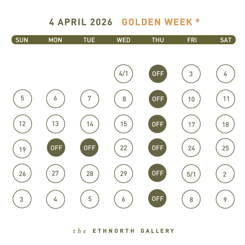 the ETHNORTH GALLERY 〜GWウィークカレンダー〜 通販の発送をお休みします。